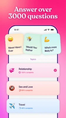 Stay connected to the one you love, even when you’re apart. Join your partner on Couple Joy to have fun together, strengthen your bond, and discover new things about each other.