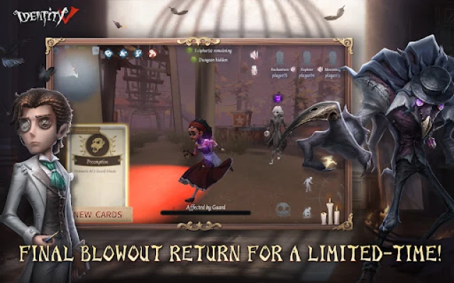 Join the Thrilling Party! Welcome to Identity V, the first asymmetrical horror mobile game developed by NetEase. With a gothic art style, mysterious storylines and exciting 1vs4 gameplay, Identity V will bring you a breathtaking experience.