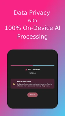 LocalSplit uses the latest AI technology optimized to run efficiently on your device. While separation times vary based on your device's performance and the length of your audio/video, most modern phones can process a minute of audio in under a minute.