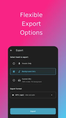 Export your separated tracks as high-quality audio or video files for any creative project.