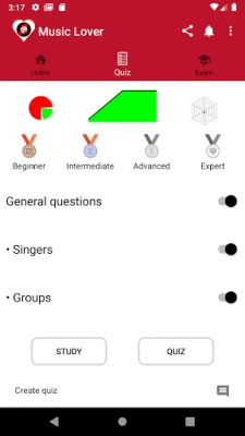 60000 different questions about songs, artists and groups divided into 4 difficulty levels. You can test yourself with Quizzes. You can learn with the Study feature. You can test your knowledge with 4 exams of increasing difficulty, at the end of which a certificate is issued. The leaderboard allows you to compete with other app users. Statistics with graphs that allow you to monitor your progress over time and understand what your strengths are.